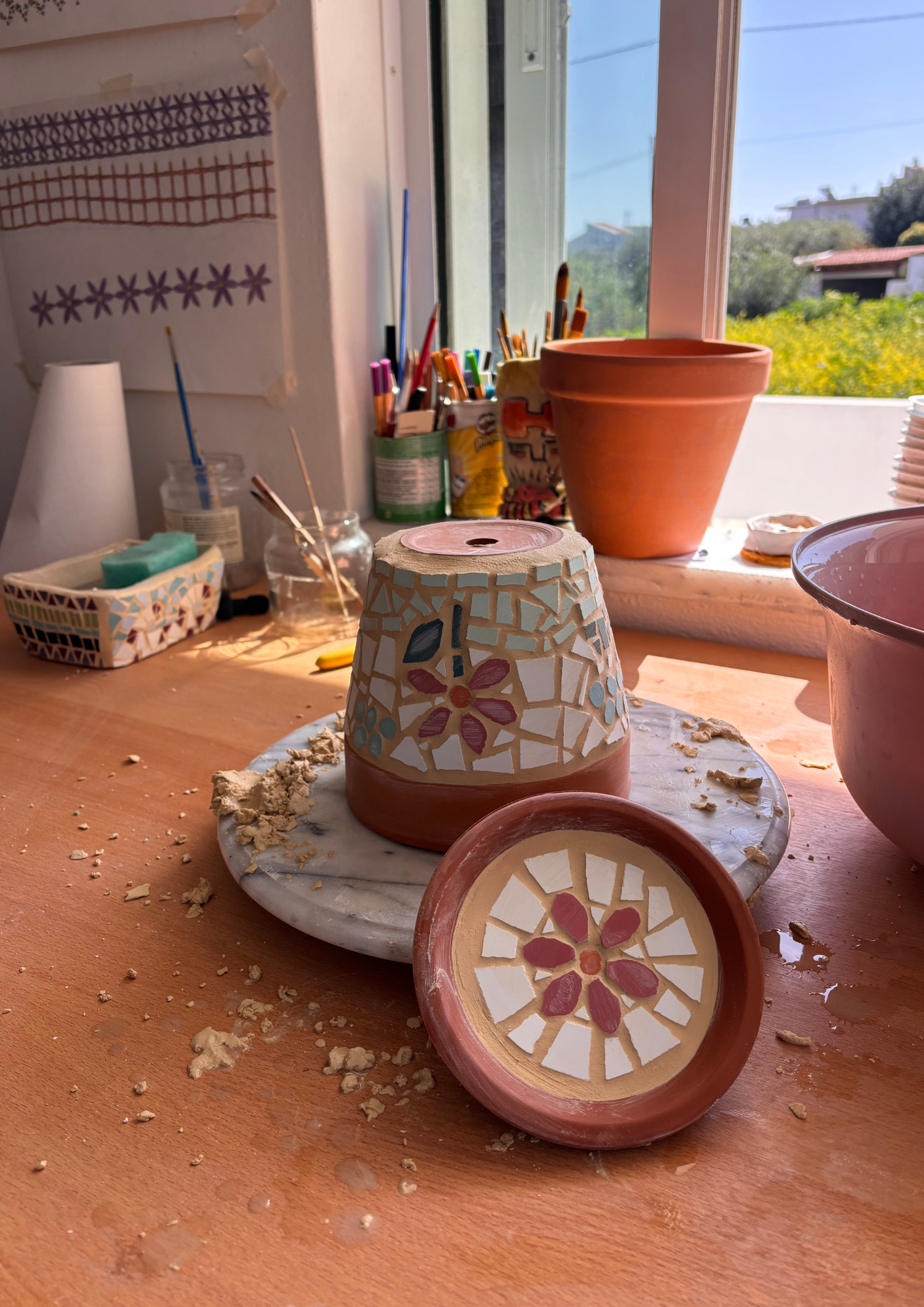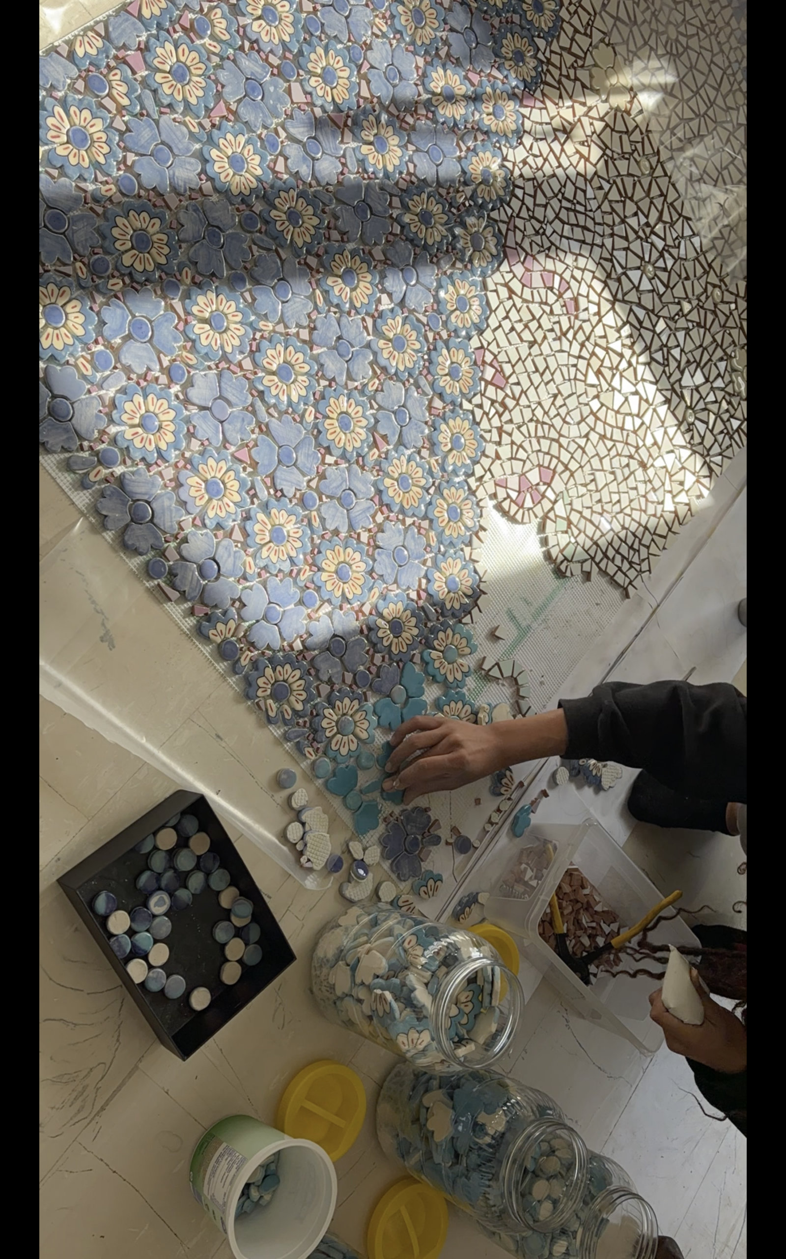 Maria-Irini Canzoniere, daughter of Marinella, is the co-founder of the Marinella Mosaic Workshop in Crete. Born in 1997 in Zurich, after graduating high school she finished her studies in Computer Science in a university in Switzerland, is currently working on her biggest project yet in which she will cover appx.150 square meters with mosaic composed of ceramic tiles and custom hand-made tiles.