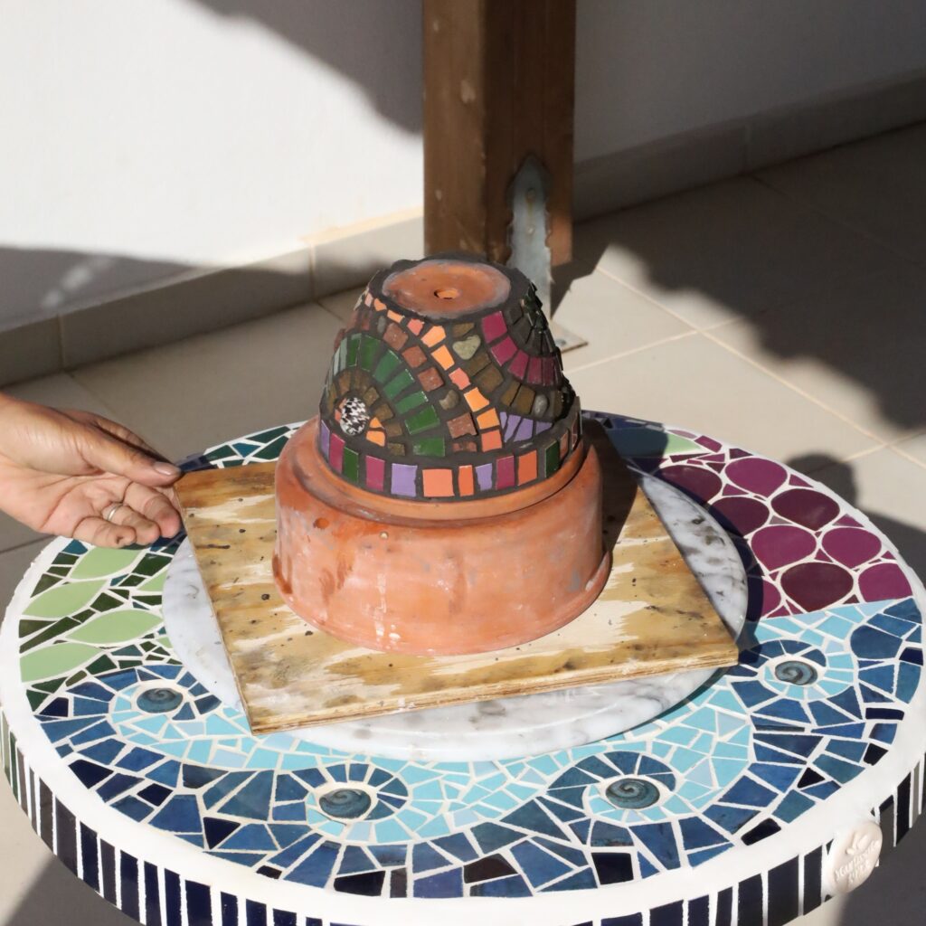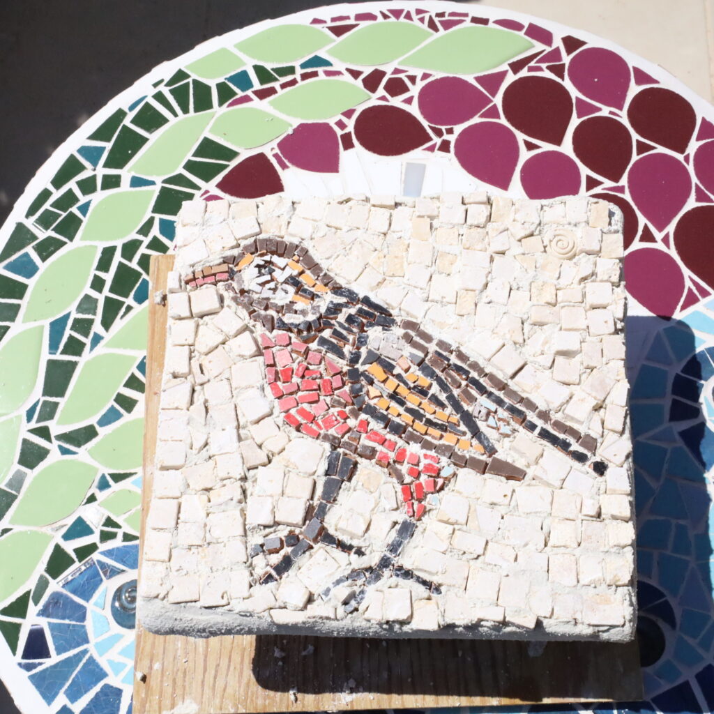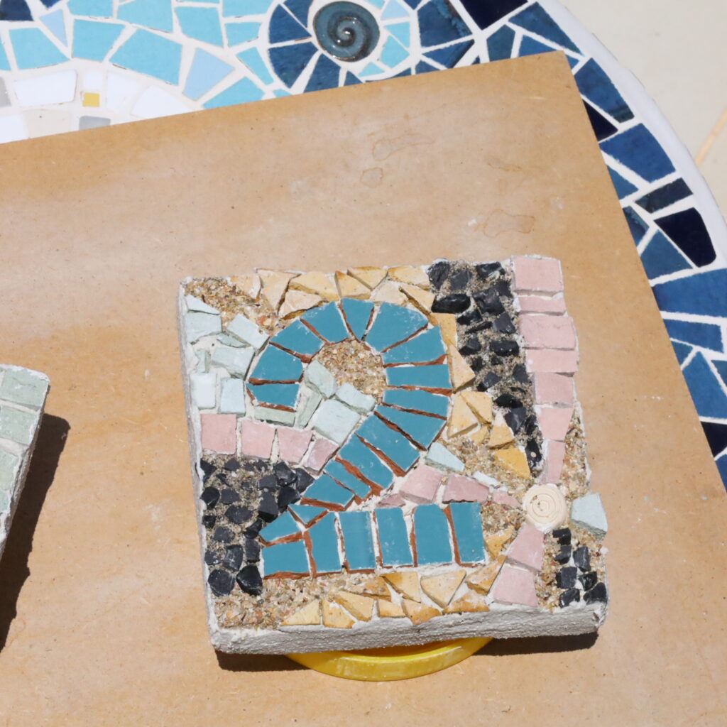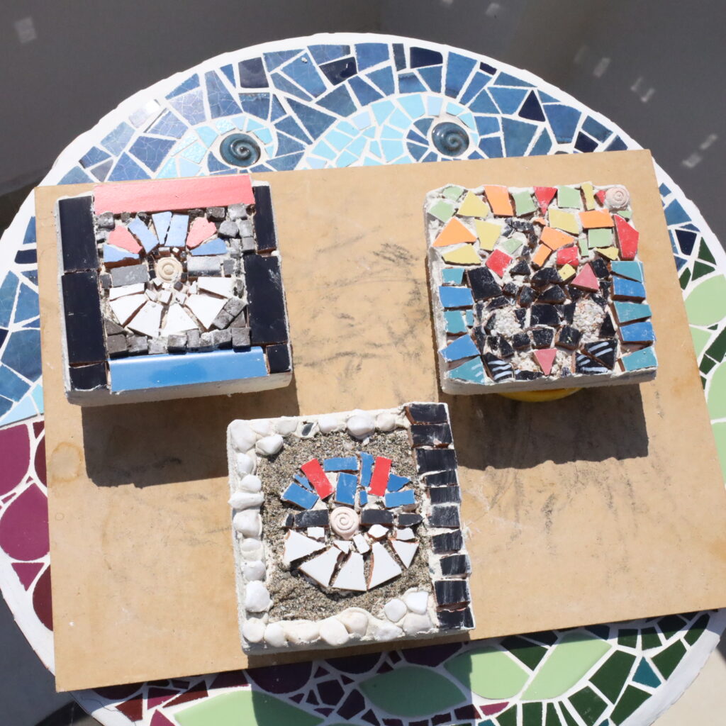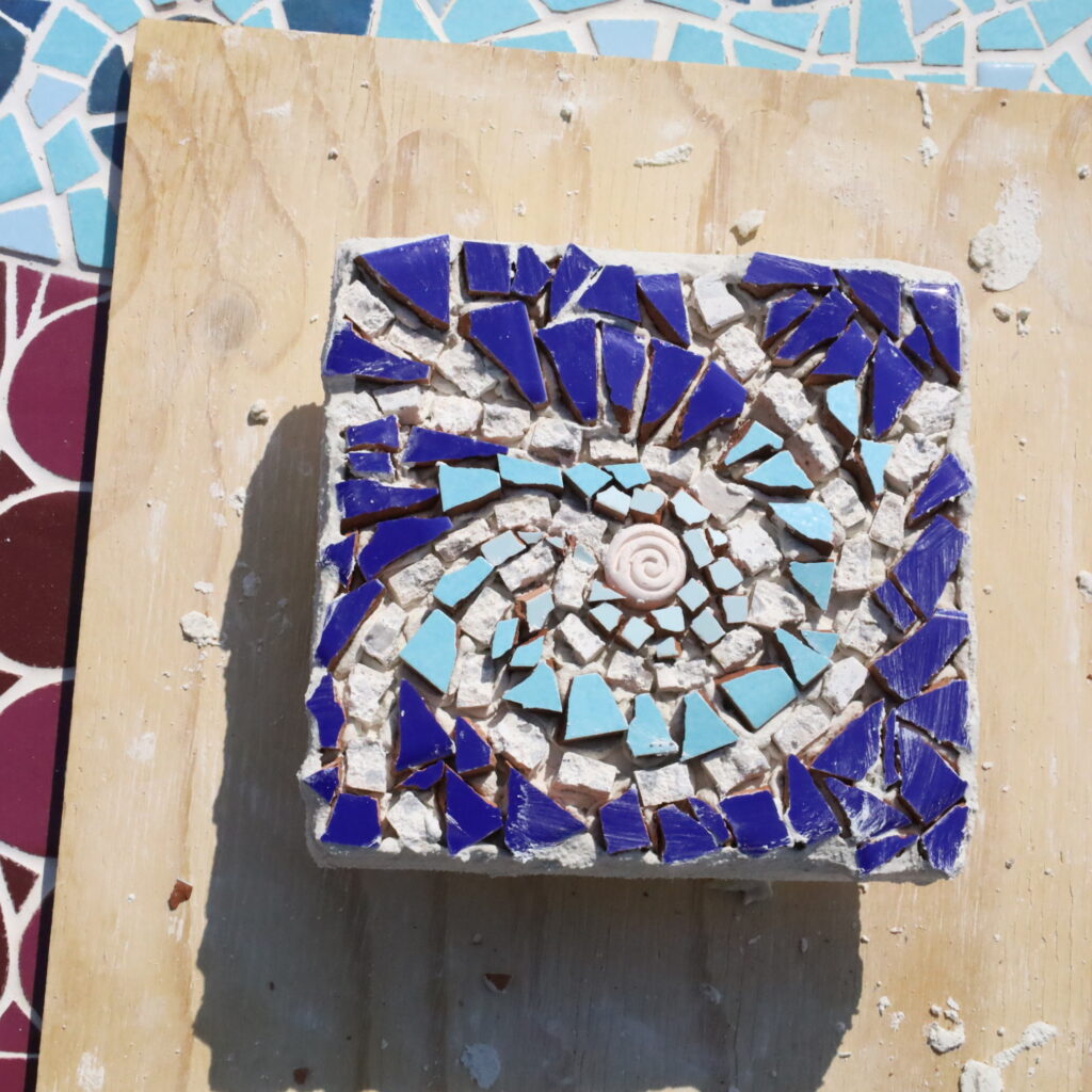 In this course you will create on a 12cm x 12cm cement board an original mosaic artwork with local rocks and coloured tiles.
