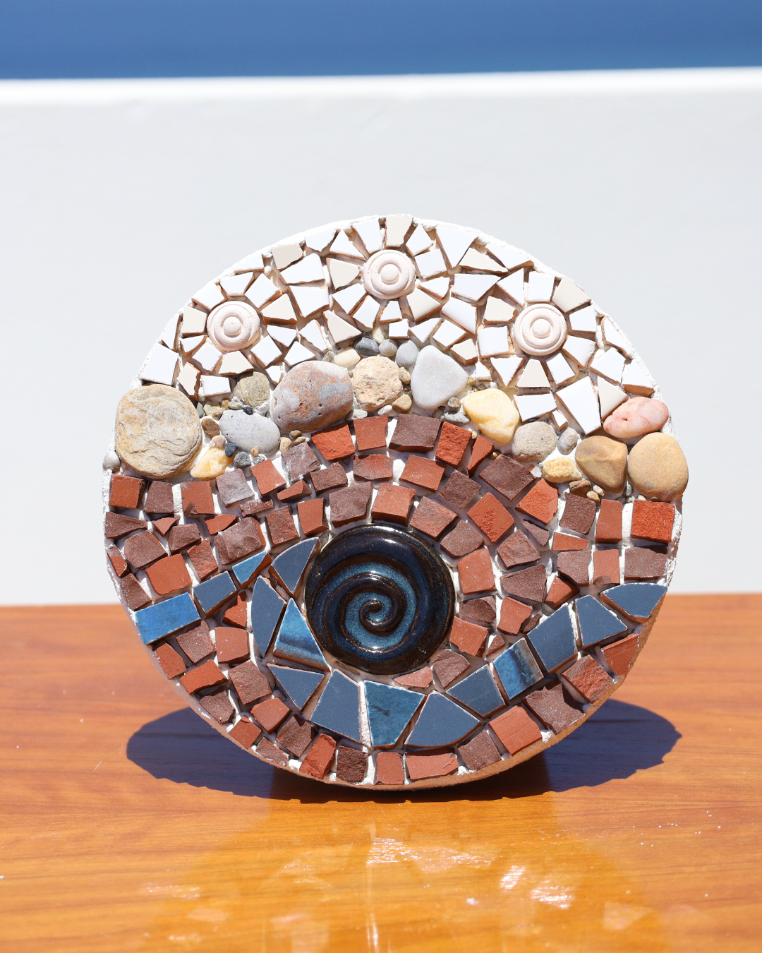 Handcrafted Round Mosaic Inspired by the Mediterranean Sea